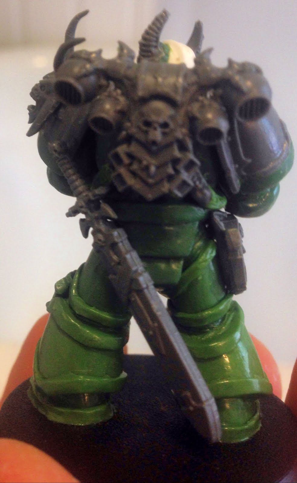 I started this model when I first conceived this army back in 2012, and the Dreadnought himself was quite straightforward to do. Bulking out the Dark Vengeance Hellbrute model was surprisingly easy to do, the snap together nature of the model allowed me to assemble it while leaving gaps between the various components which I later filled in with green stuff. The organic possession look of the model makes it easy to fill gaps in.